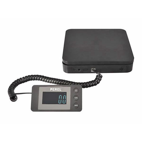 Bilancia elettronica pesapacchi (max. 40 kg) con cella di carico ad alta precisione. Dispone di una base di pesatura alla quale è collegato, tramite un cavo, il display LCD retroilluminato che visualizza la misura e dove può essere selezionata l'unità di misura (chilogrammo, grammo, libbra, oncia), superamento portata, funzione calibrazione. Alimentazione: 2 batterie da 1,5 V tipo AAA (incluse). |