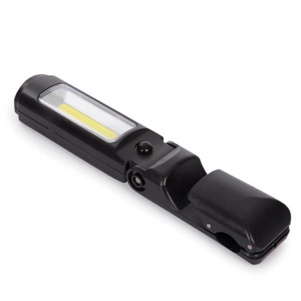 Compatta torcia dotata di LED bianco frontale da 15 lumen e led COB ad alta luminosità sul laterale con doppia modalità di impiego selezionabile, torcia con luce frontale o lampada con luce laterale. Può essere utilizzata manualmente o fissata tramite gancio per un illuminazione fissa. Lo snodo è la base magnetica garantiscono la versatilità dell’impiego.
