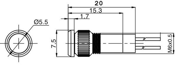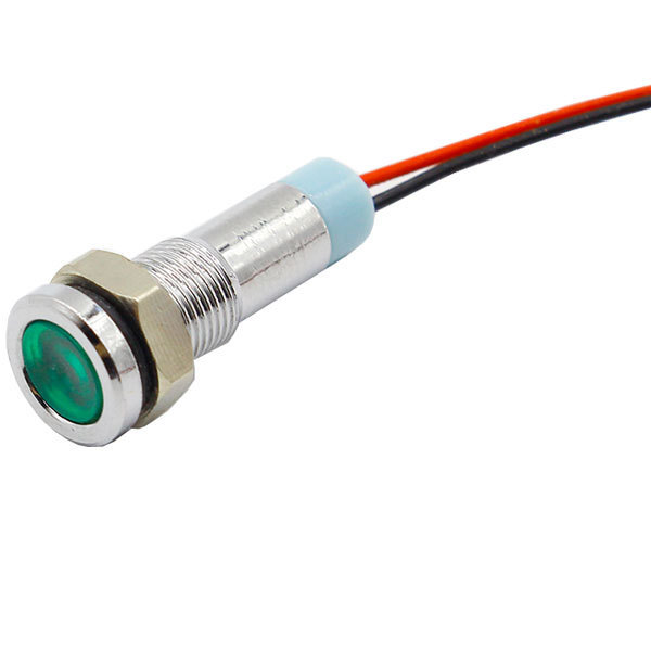 Segnalatore luminoso composto da un LED verde ad alta luminosità completo di portaled in metallo e cavetti di alimentazione. Alimentazione: 12-24 VDC, fissaggio a vite.